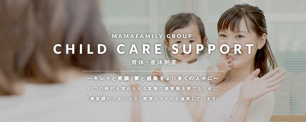 女性は出産する前、その後の育児で美容師を一時中断しなくてはなりません。そんなときでも、ママファミリーでは、出産・育児休暇制度が整っているから、現場復帰する際もスムーズにできる仕組みとなっています。